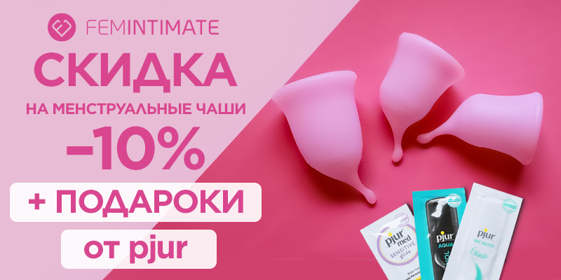 Акция «Скидка 10% на чаши Femintimate плюс подарки от pjur» продлится до 05.06, 16:00. Акция приурочена ко Дню менструальной гигиены, который ежегодно отмечается 28 мая и призван снять табу с темы менструации и привлечь внимание к проблемам, связанным с ней. Менструальные чаши — отличное средство женской гигиены, минимизирующее дискомфорт в сложные дни месяца.