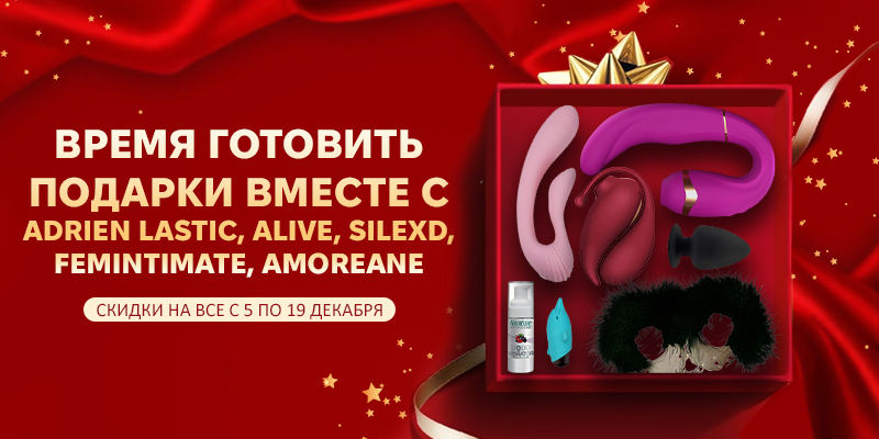 Даже взрослые девочки и мальчики очень хотят на Николая найти под подушкой приятный сюрприз! И это не конфетки, а что-то гораздо более сладкое и желанное — шикарные игрушки для взрослых от крутых брендов. Специально ко дню святого Николая мы предлагаем дополнительную скидку 7% на ВЕСЬ ассортимент брендов Adrien Lastic, Alive, SilexD, Femintimate, Amoreane.