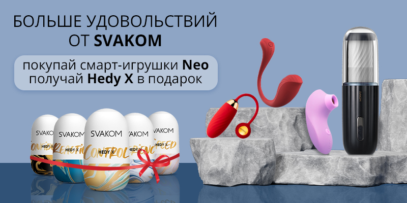 Обратите внимание, что акция от SVAKOM будет действовать еще два дня, торопитесь получить невероятный подарок! До конца марта при покупке шикарных смарт-игрушек серии SVAKOM NEO вы получаете в подарок яйцо-мастурбатор HEDY X.