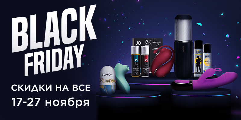 Надеемся, вы готовы к Черной пятнице, потому что мы подготовили для вас просто шикарное предложение: дополнительные скидки на весь ассортимент товаров, в том числе — и на всю линейку Satisfyer! Кроме того, на период действия акции к Черной пятнице мы снимаем ограничение на розничные скидки для всех брендов, в т.ч. для брендов Bijoux Indiscrets и Lovense. Но и это еще не все сюрпризы! Вы точно успеете приобрести все нужные товары со скидкой, ведь у нас Черная пятница будет длиться целых 11 дней, с 17 по 27 ноября! Главное, чтобы товаров хватило на складе :)