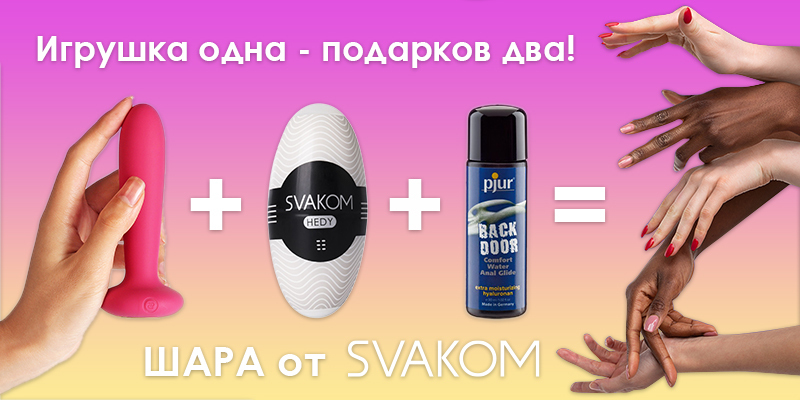 В рамках продленной акции «Анальный август» и новехонькой акции «Сладкий подарок от SVAKOM», покупая любую вибропробку Svakom Primo, вы получаете целых 2 подарка: яйцо-мастурбатор Svakom Hedy и анальную смазку pjur backdoor Comfort water glide 30 мл *