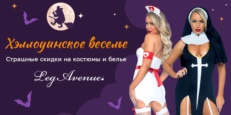 Напоминаем вам, что действует акция «Хэллоуинское веселье» с грандиозной дополнительной скидкой +10% на весь ассортимент бренда Leg Avenue! Акция действует до 5 ноября включительно.