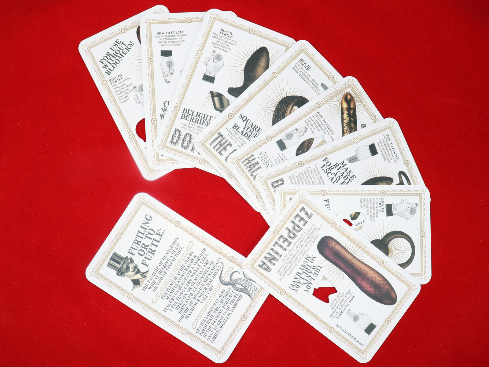 P.S. Furtling — это оптическая игра, древнее эротическое интерактивное развлечение. В бумажных открытках с изображениями на определенных местах имеются аккуратные прорези, под которые можно подставить части кисти руки или пальцев и они очень реалистично будут отображать эротический подтекст картинки. Это весело, эротично и забавно. Кроме того, на обратной стороне карт изображен гаджет Dr Rocco с подробным описанием, который идеально подойдет для приятной стимуляции именно этой части тела.