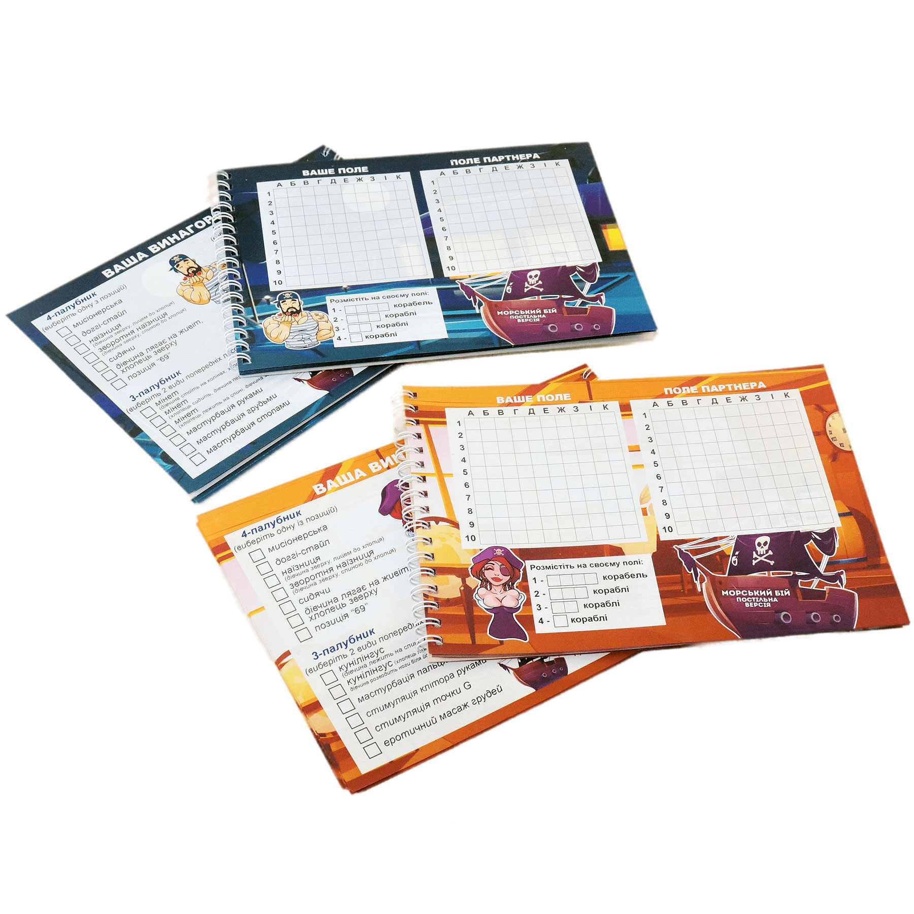 В комплекте 2 блокнота (мужской и женский), в каждом из который 30 листов для размещения кораблей женский. 30 листов - это 30 захватывающих игр, которые не только помогут весело провести время, но и сблизить с партнером и поможет лучше узнать сексуальные предпочтения друг друга.