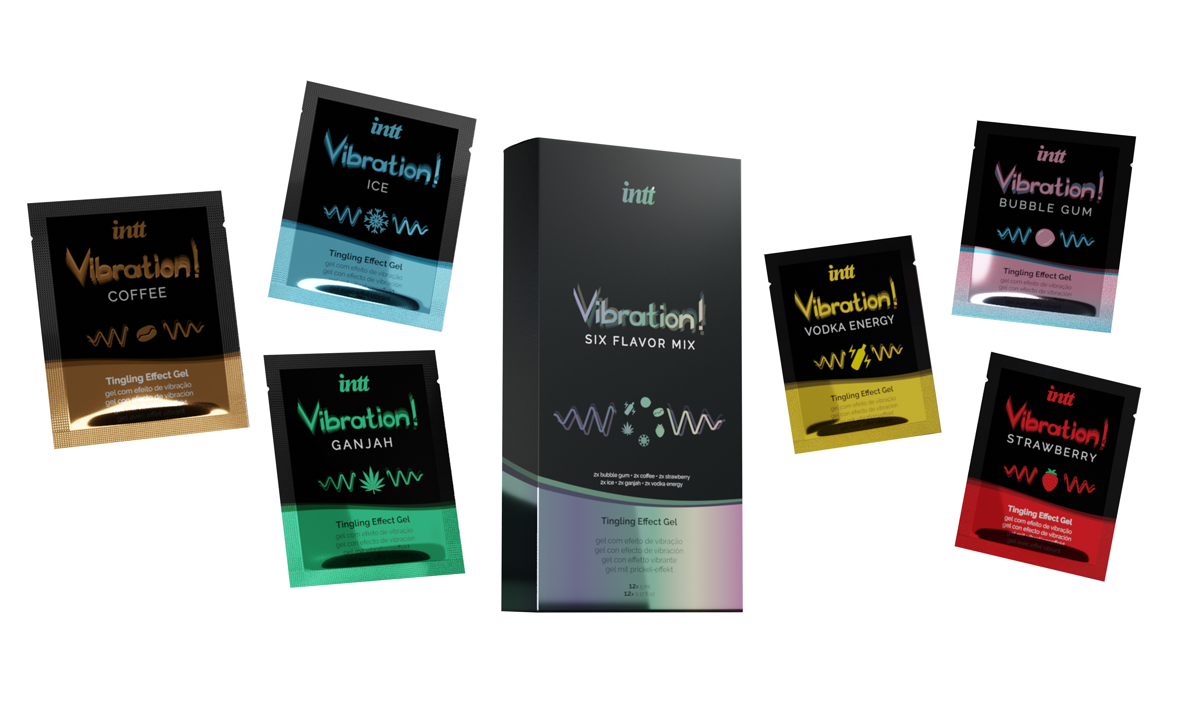 - Набор пробников жидкого вибратора Intt Vibration Six Flavor Mix (12 по 5 мл)