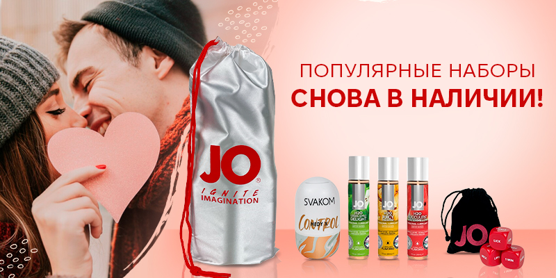 До самого романтичного праздника в году — Дня святого Валентина — осталось меньше месяца, так что самое время подбирать подарки. Мы рады представить уже знакомые вам готовые подарки для него и для нее — наборы в атласных мешочках System JO! В каждый набор входят три вкусных лубриканта JO, игрушка (вибропуля или яйцо-мастурбатор), а также — игральные кубики System JO. Все, что нужно для горячего свидания! Кроме того, набор обойдется вам дешевле, чем покупка всего наполнения по отдельности (экономия от оптовой цены составляет 5%, от МРЦ 13-16%).