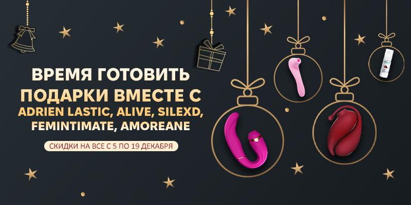 До Нового года осталось всего 15 дней! А до окончания действия нашей предпраздничной акции — всего 3 дня! Еще успеваете приобрести шикарные подарки от испанских брендов Adrien Lastic, Alive, SilexD, Femintimate и Amoreane со скидкой 7% и порадовать своих клиентов подарками под подушку и под елочку.