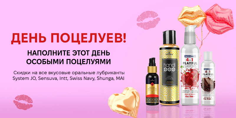 Вчера, 6 июля, все неравнодушные отмечали Всемирный день поцелуев, а мы продолжаем праздновать и дарить вам скидки! Вы еще успеваете сегодня, до 14:00, получить дополнительную скидку 5% на вкусовые лубриканты известных брендов.