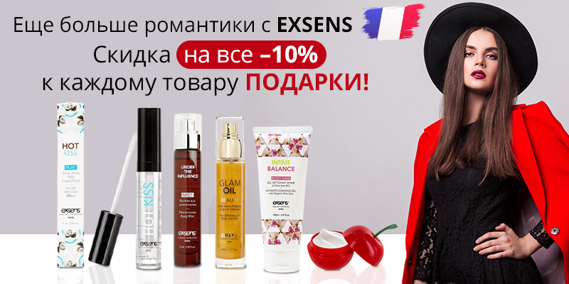 Теплый и солнечный май будто специально создан для романтических свиданий с чувственным продолжением! Чтобы добавить в интимные отношения немного французского шарма, предложите своим клиентам скидку на шикарную косметику EXSENS. Разогревающие масла с изысканными вкусами, стимулирующие гели, возбуждающие кремы для сосков — все это сделает отношения более волнующими и горячими.