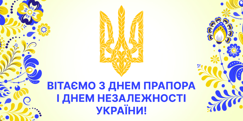 Искренне поздравляем вас с наступающим Днем Государственного Флага и Днем Независимости Украины — праздниками, которые символизируют силу, свободу и стойкость нашего государства. Это дни, когда мы все испытываем особую гордость за нашу страну и нашу историю.
