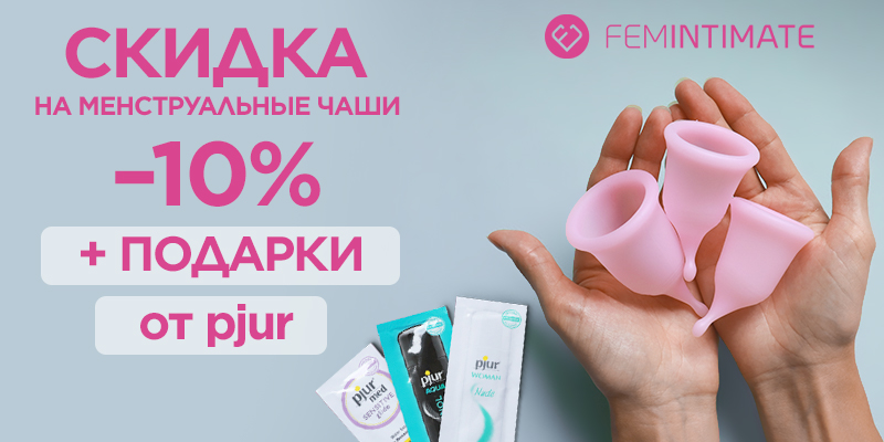 Сегодня — последний шанс приобрести менструальные чаши Femintimate со скидкой 10%, а также получить к каждой чаше гарантированный подарок — три лубриканта pjur. Скидка предоставляется на чаши Femintimate Eve Cup New в размерах L, M, S (SO6303, SO6304, SO6305).