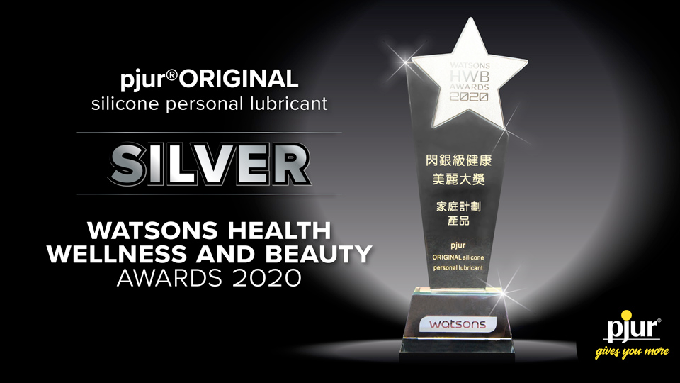 Недавно компания pjur выиграла премию Watsons Health Wellness Beauty (HWB) Awards 2020 в Гонконге в категории продуктов для планирования семьи. Этой наградой Watsons отмечает самые выдающиеся косметические товары в сети Watsons. Watsons является ведущим поставщиком товаров для здоровья и красоты в Азии с более чем 7 800 магазинами по всему миру. Только самый надежный производитель может добиться этого признания Watsons за выдающуюся эффективность на основе отзывов клиентов, продаж и транзакций в предыдущем году.