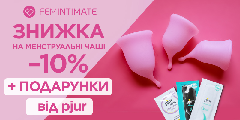 Акція «Знижка 10% на чаші Femintimate плюс подарунки від pjur» триватиме до 05.06, 16:00. Акція присвячена до Дня менструальної гігієни, який щорічно відзначається 28 травня та покликаний зняти табу з теми менструації та привернути увагу до проблем, пов’язаних із нею. Менструальні чаші — чудовий засіб жіночої гігієни, що мінімізує дискомфорт у складні дні місяця.