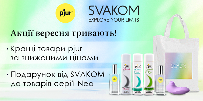 Раді нагадати вам про акції вересня: кращі товари pjur за кращою ціною та подарунок від SVAKOM до товарів серії Neo — фірмова екосумка!