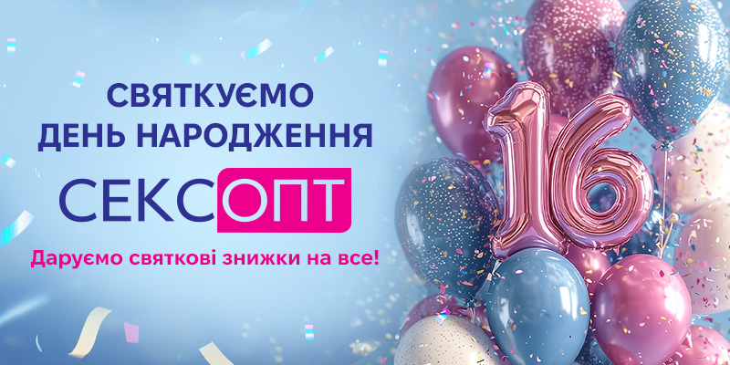Цього року компанія Сексопт відзначає своє 16-річчя, і на честь нашого дня народження ми підготували акцію, яку ви так любите: ми даруємо додаткові знижки на ВСІ товари! Поспішайте придбати найяскравіші, найцікавіші іграшки, високоякісну косметику та цікаві аксесуари з нашого асортименту з додатковою знижкою!