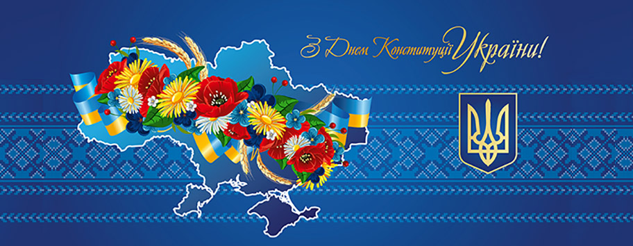 Хочемо привітати Вас з наступаючим Днем Конституції України! З 28 червня 1996 року Наша держава намагається розвиватися за демократичними принципами, які найбільше цінують право людини на особисте життя, власну думку і свободу дій. Може не все так добре виглядає в реальному житті, але давайте вірити у краще майбутнє. Від щирого серця бажаємо Вам успіху, процвітання Вашому бізнесу та міцного здоров'я Вам особисто. Нехай свято демократії відкриває для Вас нові горизонти для розвитку та самовдосконалення.