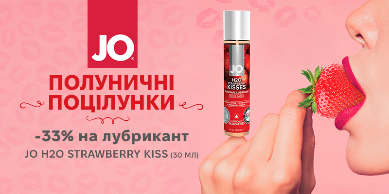 Відзначайте з нами День поцілунків та отримайте знижку 33% на смачну полуничну змазку JO H2O Strawberry Kiss (30 мл) — для найсолодших інтимних поцілунків!