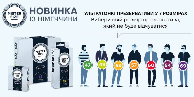 Представляємо вам новинку — презервативи німецького бренду MISTER SIZE, які дійсно підходять за розміром! 7 розмірів, 3 варіанти паковання (3, 10 або 36 шт.) плюс набір тест-сет із трьома різними розмірами, щоб підібрати потрібний. Ідеальний розмір — запорука ідеальних відчуттів!