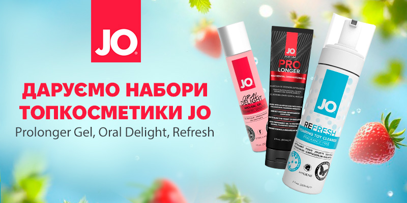 Щоб отримати неймовірний набір із міксом косметики Prolonger Gel, Oral Delight та REFRESH від JO, необхідно закупити продукцію цього бренду на 35 000 грн. Обсяг подарунка рівносильний знижці на продукцію бренду майже 15%*! Чим більша закупівля, тим більше подарунків!