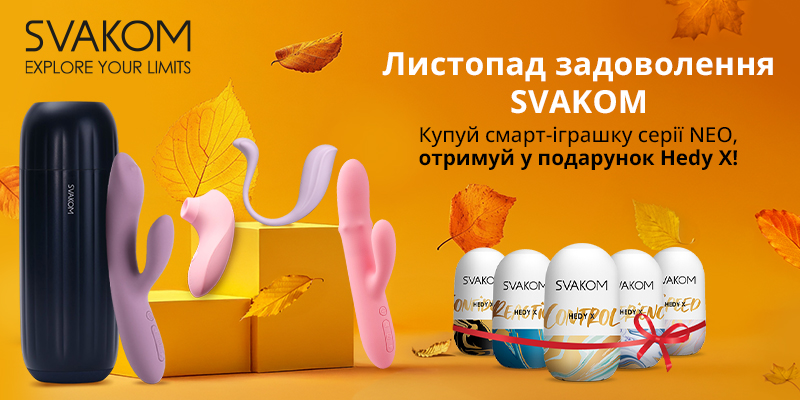 Зверніть увагу, що акція «Листопад задоволення» добігає кінця. Залишилося три дні, щоб отримати яйцемастурбатор HEDY X у подарунок під час купівлі іграшок SVAKOM серії NEO.