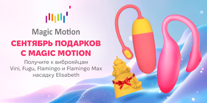Сентябрь подарков в самом разгаре! Напоминаем, что в сентябре у нас действует подарочная акция с Magic Motion: при покупке игрушек Magic Motion Flamingo, Flamingo Max, Vini или Fugu вы получаете в подарок насадку Magic Motion Elisabeth! Сделайте любимые игрушки еще более интересными и функциональными с насадкой Elisabeth!