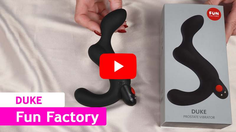 Предлагаем купить массажер простаты Fun Factory DUKE — игрушку совершенно нового уровня! Его вводимая часть загнута под таким углом, чтобы идеально стимулировать простату, а гибкая наружная часть приятно воздействует на промежность. К тому же массажер полностью изготовлен из силикона и не мешает вашим движениям. С ним удобно сидеть, заниматься проникающим или оральным сексом, и просто наслаждаться глубокими вибрациями! Внутри массажера установлена вибропуля, которая работает в 5 режимах. Вибропулю можно вынуть и использовать для любых ласк эрогенных зон у него и у нее. Отличный вариант для самого глубокого удовольствия и эффективного массажа простаты!