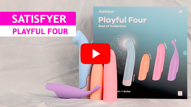 Целый квартет вибраторов для максимального удовольствия! Предлагаем купить набор 4-в-1 Satisfyer Playful Four: целых 4 игрушки для самых горячих эротических экспериментов! В набор входит блок с мощным мотором и насадки, превращающие его в различные вибраторы: для точки G, для клитора и сосков, для вагинальной стимуляции и для игр с наружными эрогенными зонами. Насадки легко меняются и надежно крепятся на блочок. Работает в 12 режимах, есть как ровные вибрации разной интенсивности, так и ритмические рисунки. Игрушки полностью водонепроницаемые (IPX7).