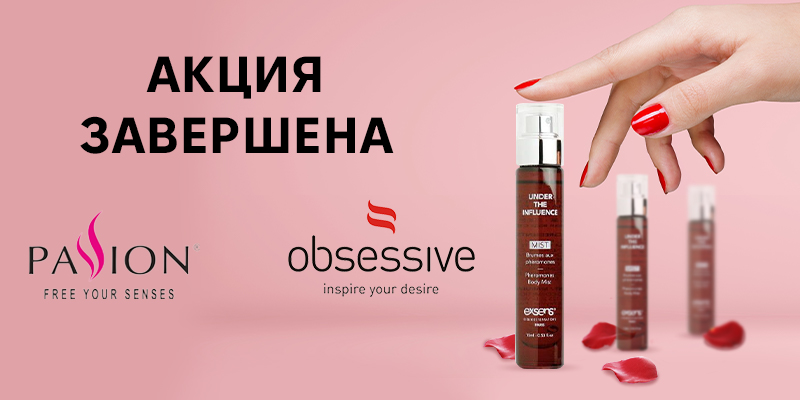 Благодаря вашей активности и большому количеству заказов на продукцию брендов Passion и Obsessive, акция «Сладкая осень» подошла к концу. Как мы и сообщали, количество подарков было ограничено и подарочный фонд исчерпан. Таким образом, подарок (спрей для тела с феромонами EXSENS Under The Influence) получат только те, кто уже успел оформить заказы (до окончания подарочной продукции на складе).